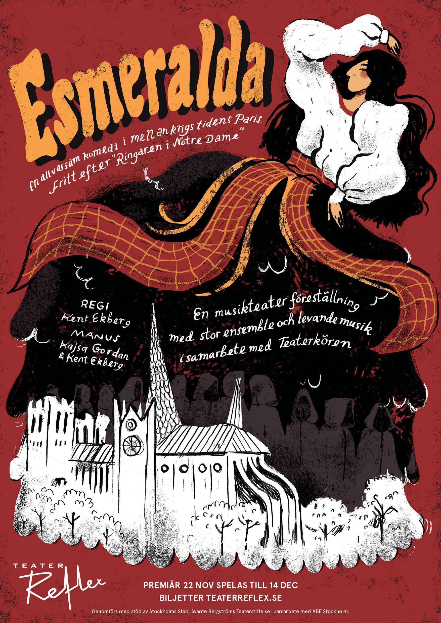 Under hela året 2024 skrev jag på en pjäs tillsammans med regissör Kent Ekberg. Esmeralda hade premiär på Teater Reflex i november. En helaftonsföreställning med en 40 man stor ensemble, en stor kör och musiker på scen. Alla föreställningar blev utsålda. Det var fantastiskt roligt att få vara med om detta. Det var inte första gången jag skrev för teatern och jag hoppas att det kommer att bli fler gånger.